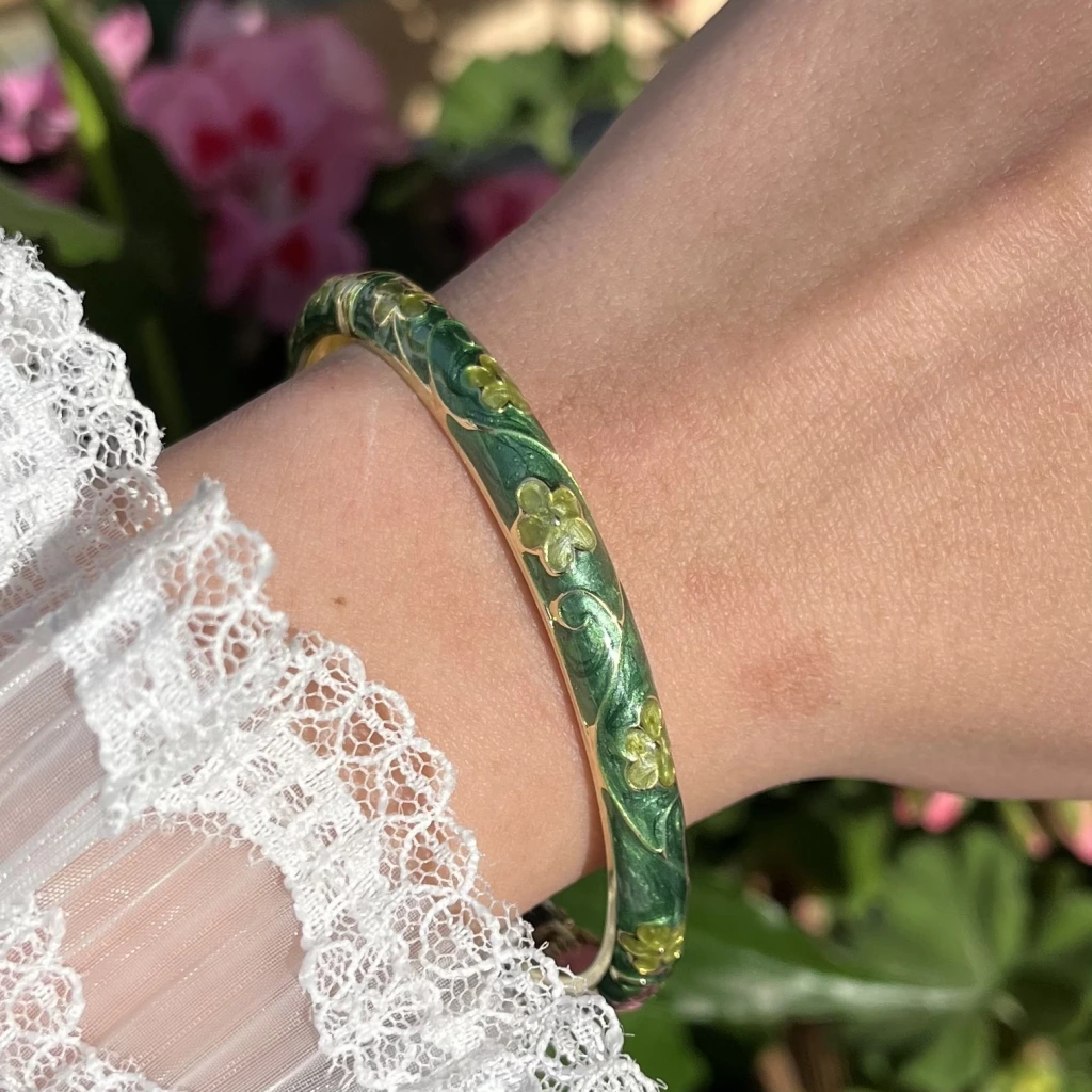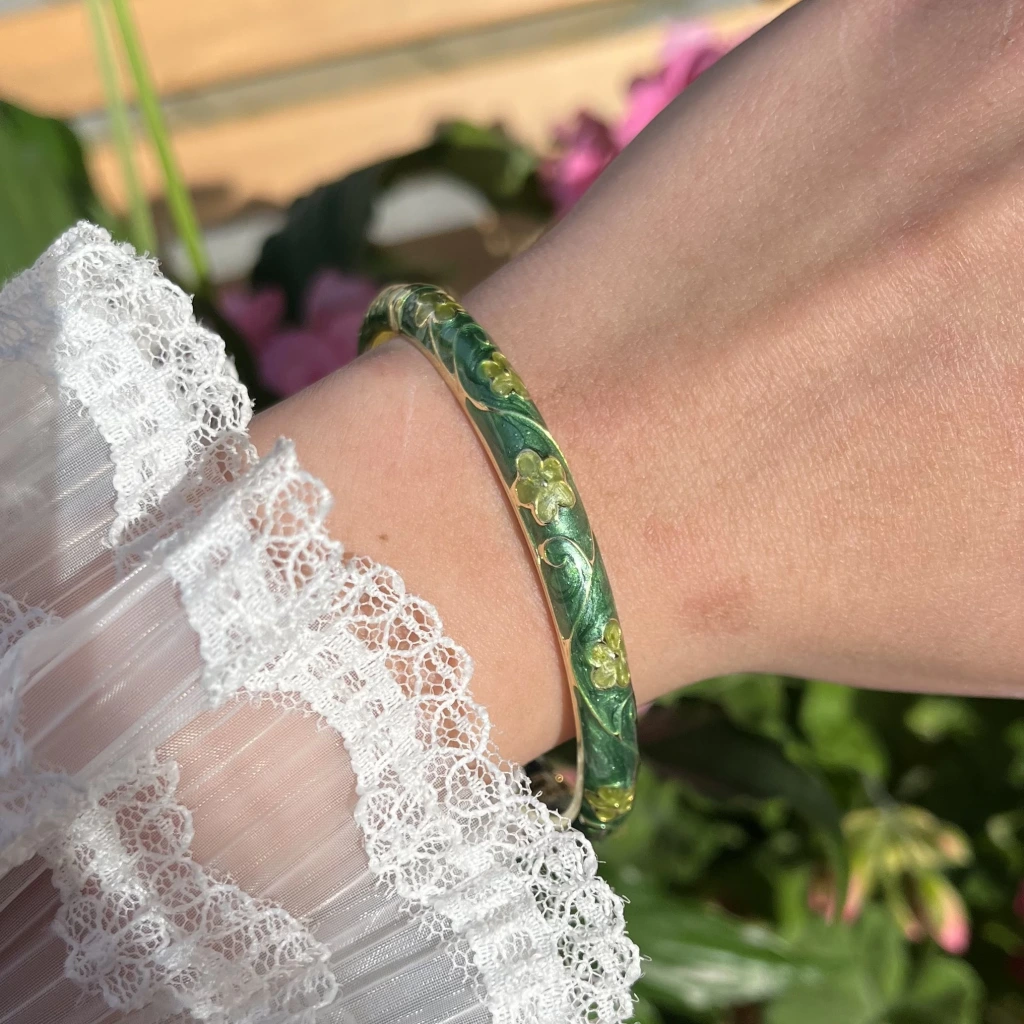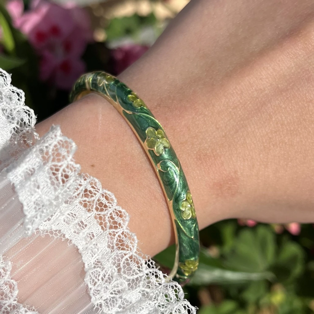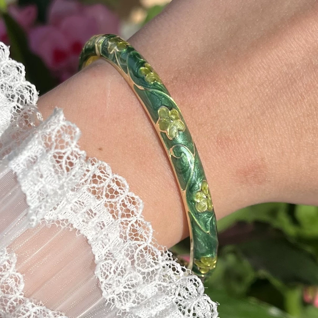 • Yeşil Çiçek Desenli Vintage Mineli Bileklik