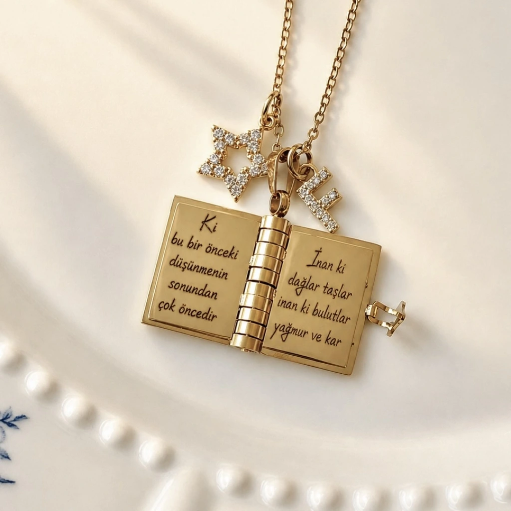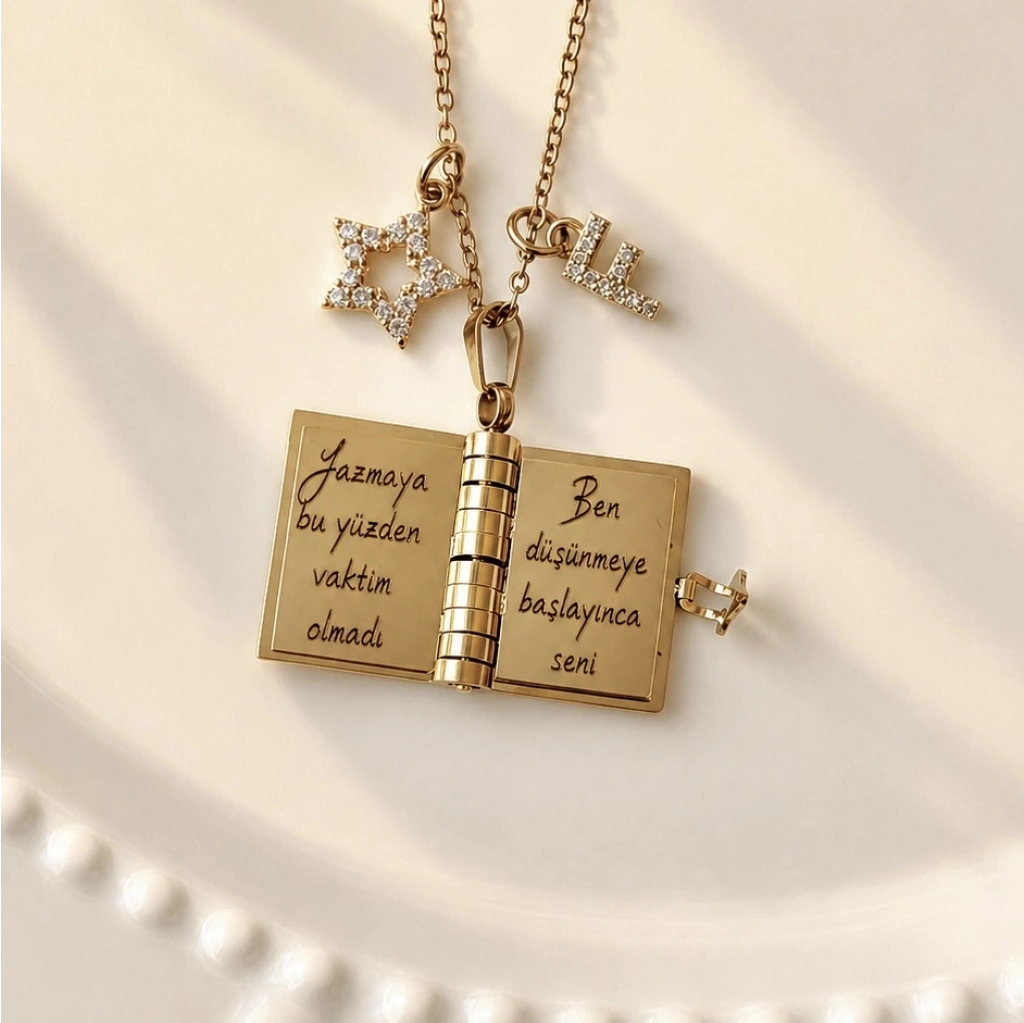 Yıldız Charmlı ve Harfli Şiirli Kitap Kolye