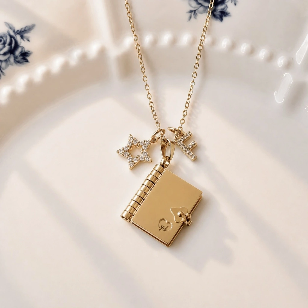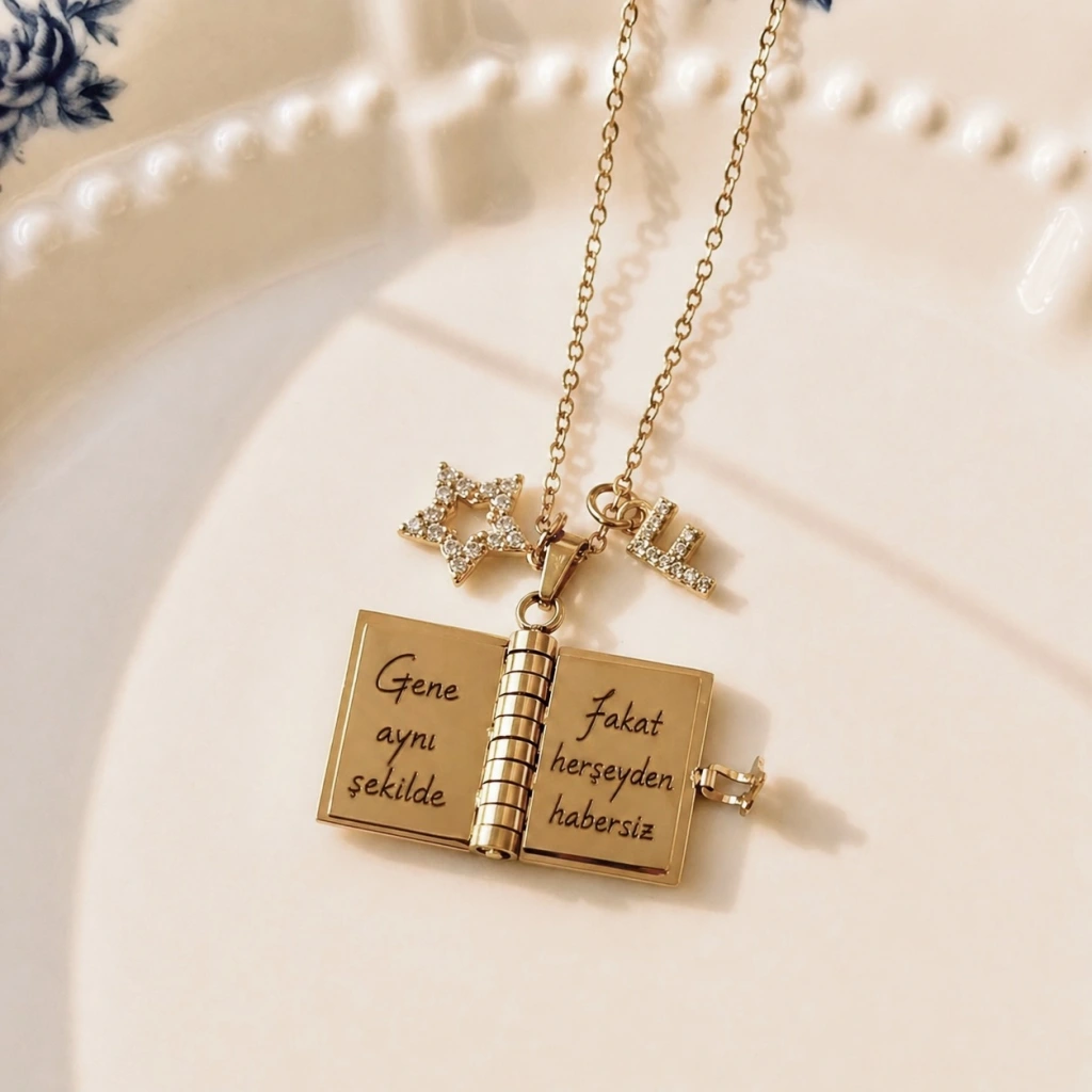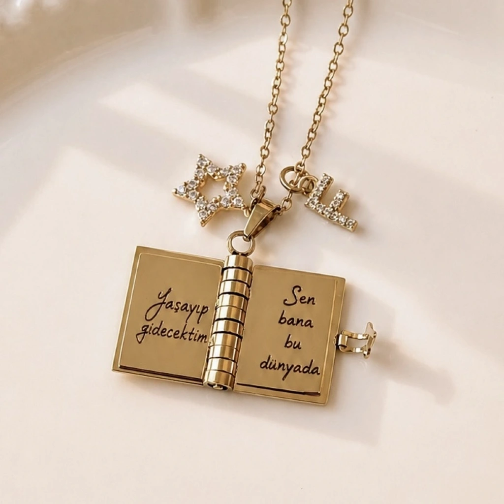 Yıldız Charmlı ve Harfli Şiirli Kitap Kolye