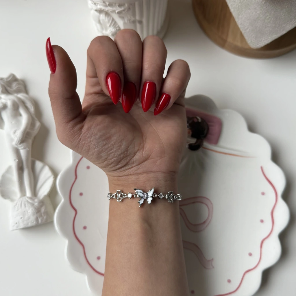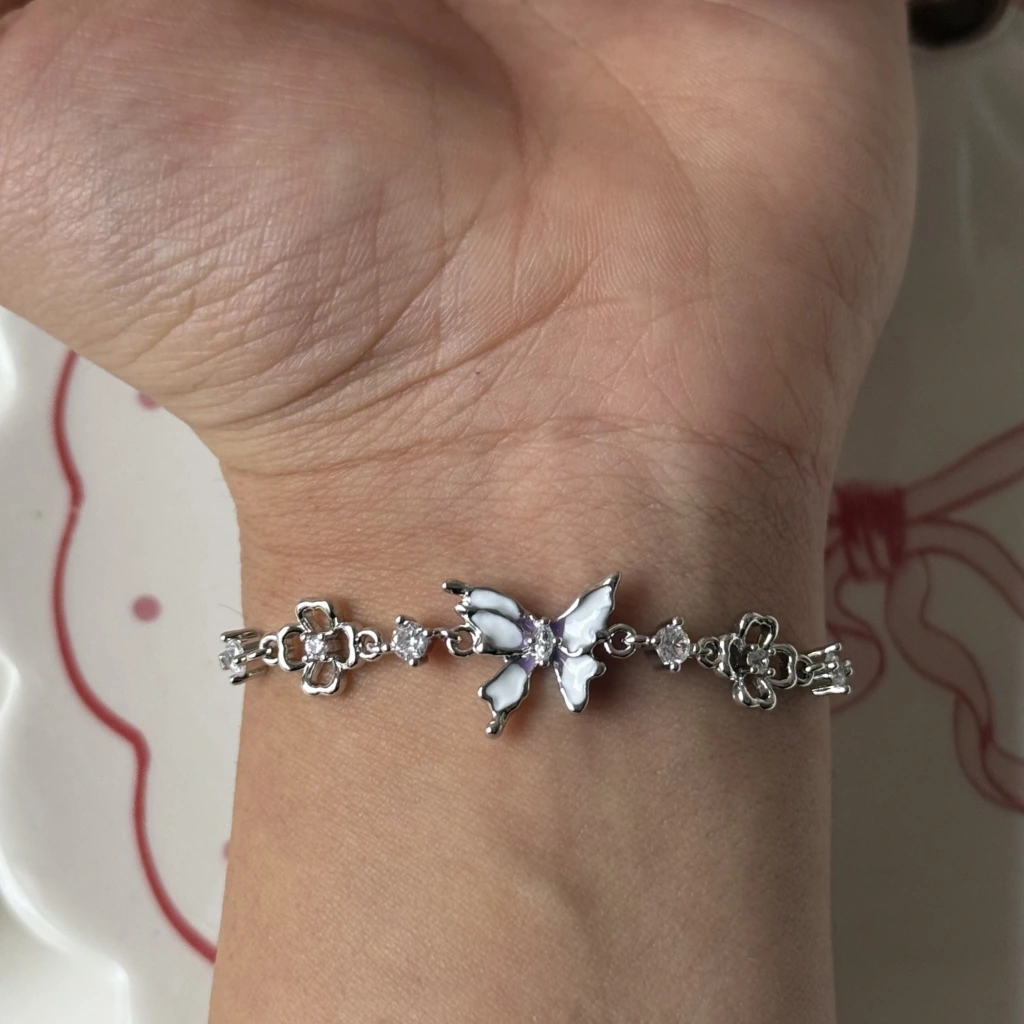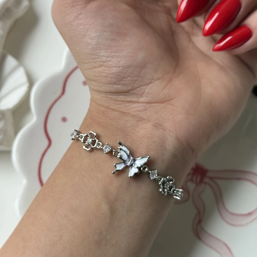 • Zarif Taşlı Beyaz Kelebek Bileklik