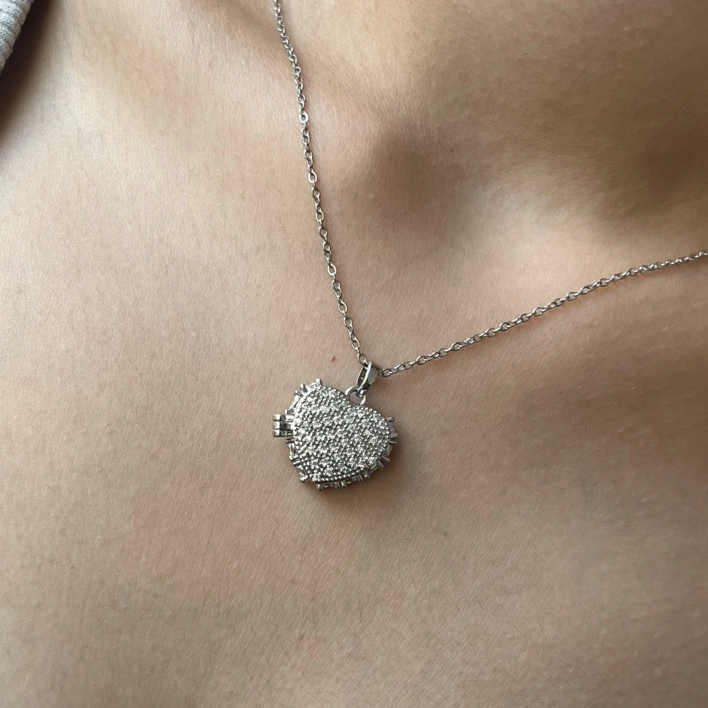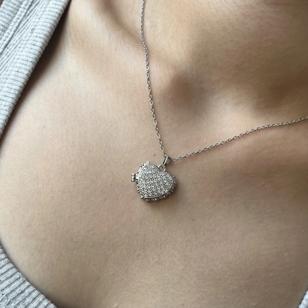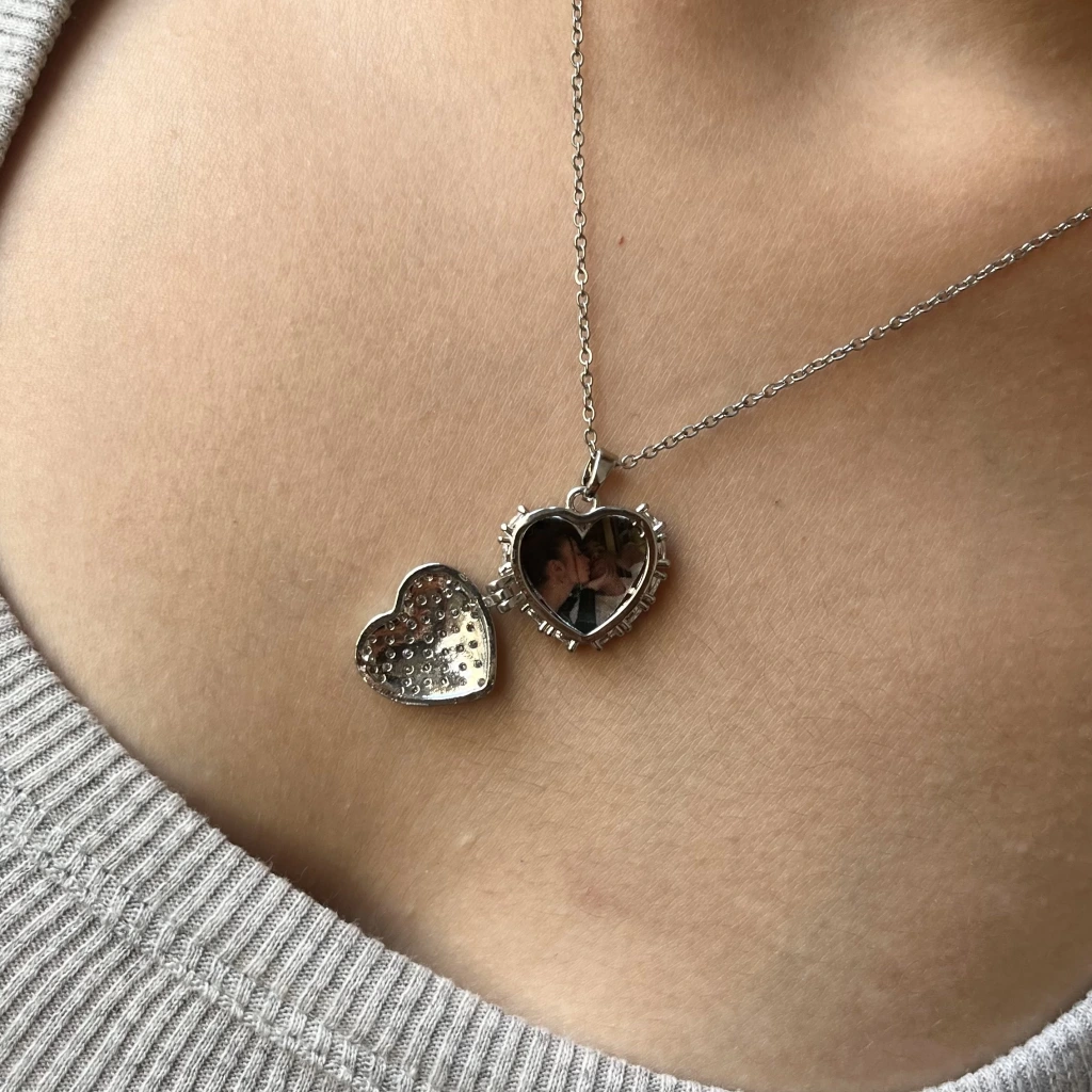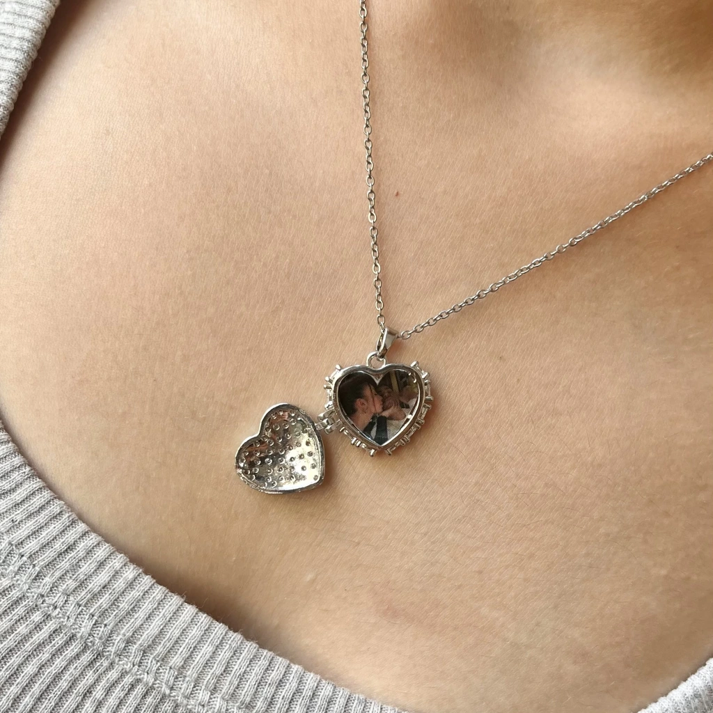 • Zirkon Taşlı Fotoğraflı Kapaklı Kalp Kolye